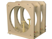 HM-3-900型線圈就是在亥姆赫茲線圈的基礎(chǔ)上,改進(jìn)后的三線圈亥姆赫茲線圈組,經(jīng)過計(jì)算模擬仿真實(shí)踐,三個線圈的半徑都為R時,中心線圈到兩個線圈的距離為0.7R, 中心線圈的匝數(shù)為兩邊線圈匝數(shù)的0.5倍,